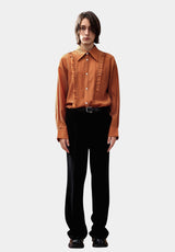 Embrace the retro flair with this vintage-inspired shirt that comprises all the details we love, from the micro-pleated textures to the two panels of ruffles down the bodice. Zoom in on the button-down and you’ll notice the checkered design that seals the look. It’s available in two neutral shades.